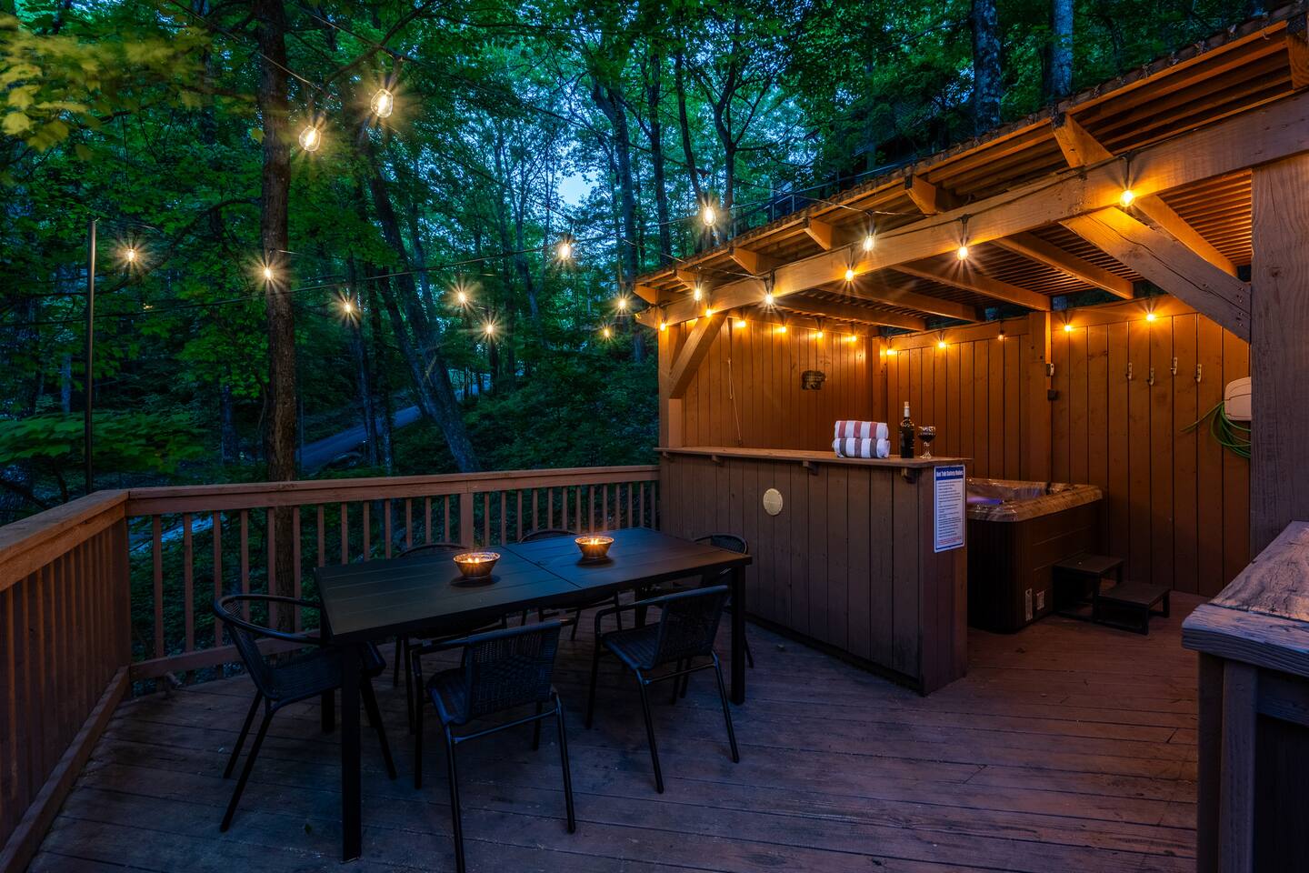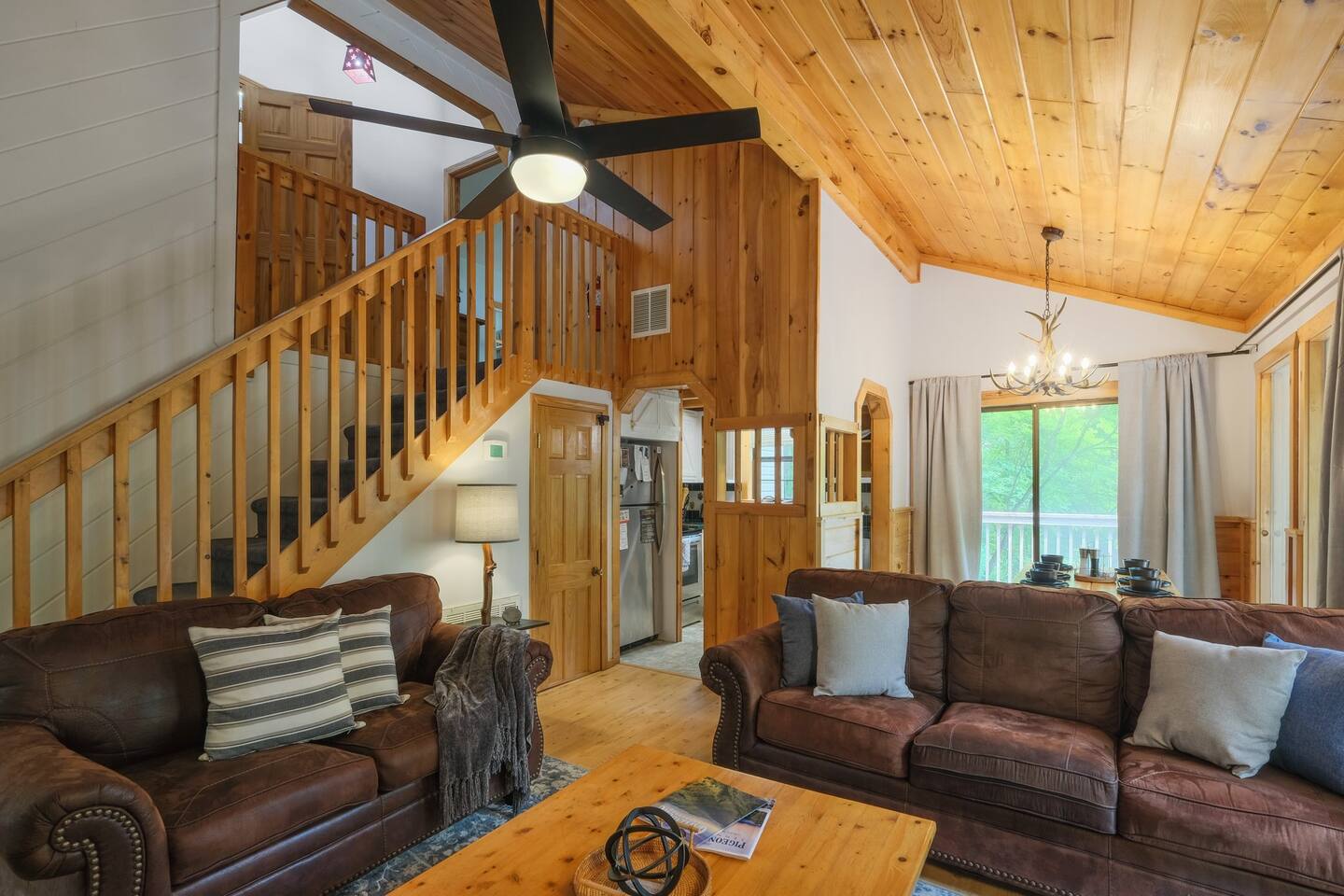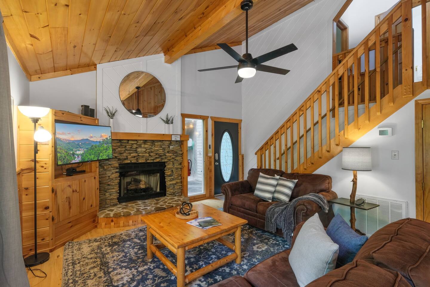 150 yards from Great Smoky Mountain National Park ★ 1 mile from Ober Gatlinburg ★ 3.9 miles from Gatlinburg ★ 11 miles from Pigeon Forge★ Access to 3 clubhouses (open seasonally, Memorial Day - Labor Day) equipped with pools, pickleball/tennis courts, workout facility, and games ★ Cove Mountain Trail access, just 150 yards away ★ Common bear sightings ★ Bi-level deck ★ Hot tub ★ Fire pit with chairs★ Park style charcoal grill ★ Jetted tub in master ★ Family games